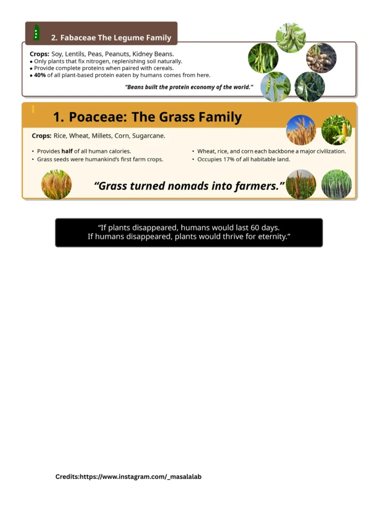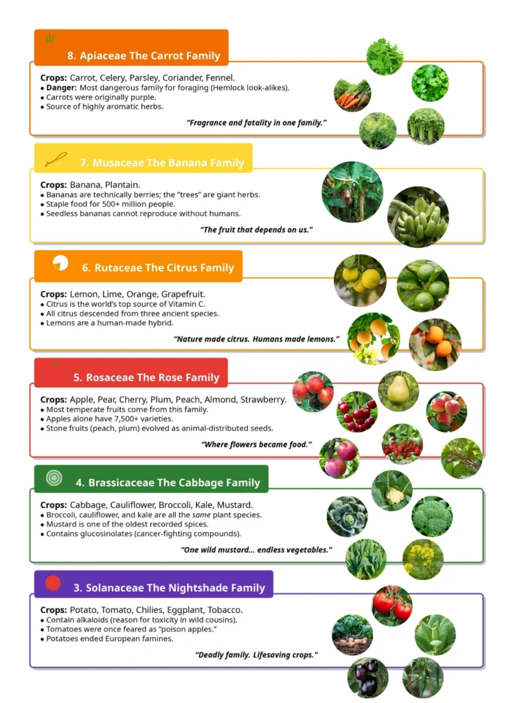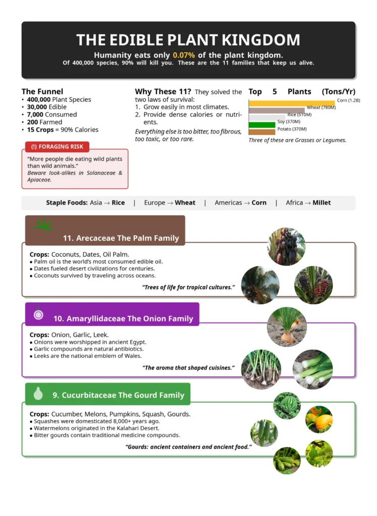 This is a visual guide breaking down the 11 plant families that feed humanity.